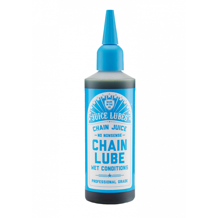 Chain Juice Wet er tøff som et par gamle støvler og bygget for å holde giringen jevn under den tyngste belastningen. Den holder seg gjennom de verste værforholdene og holder girene dine skarpe, glatte, lydløse og rustfrie. Den er vanntett, den er anti-rust og den vil ikke slenge av når du suser i toppfart nedover favoritt bakken din. Et tøft smørings middel for tøffe ryttere.